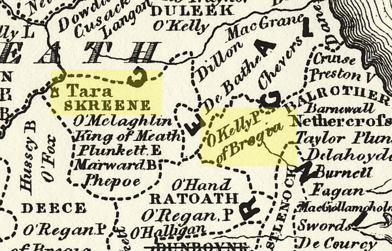 Annals of Clonmacnoisc refer to the Bregia or Brey as the lands of Aed of Slaine and the O'Kellyes right up to the coming of King Henry II