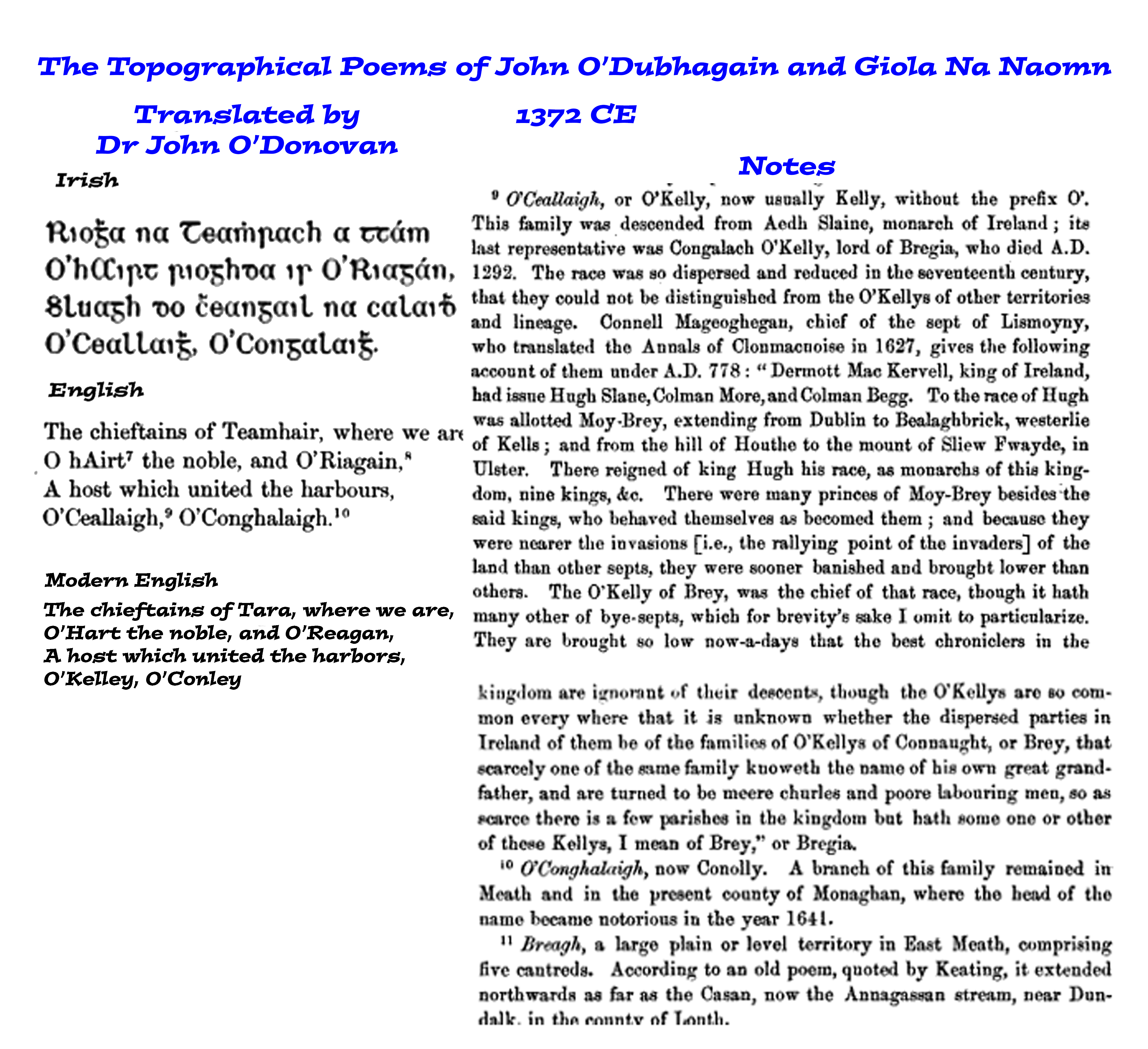 Annals of Clonmacnoisc refer to the Bregia or Brey as the lands of Aed of Slaine and the O'Kellyes right up to the coming of King Henry II