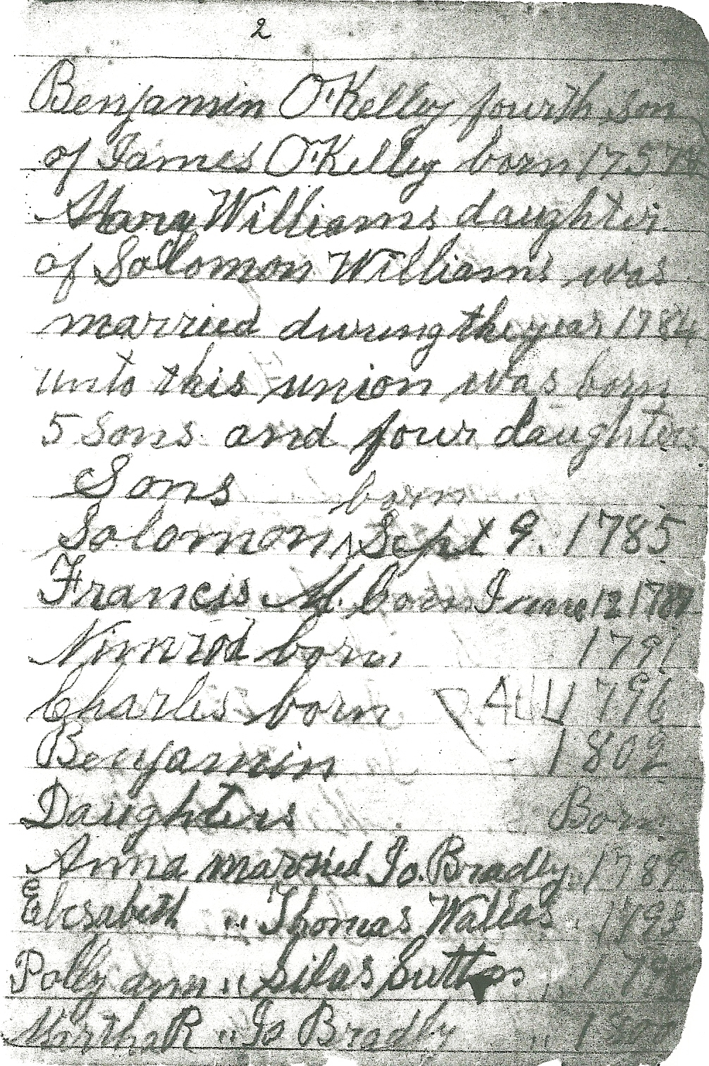parents of Dr Thomas K O'Kelley's ancestor Benjamin was
