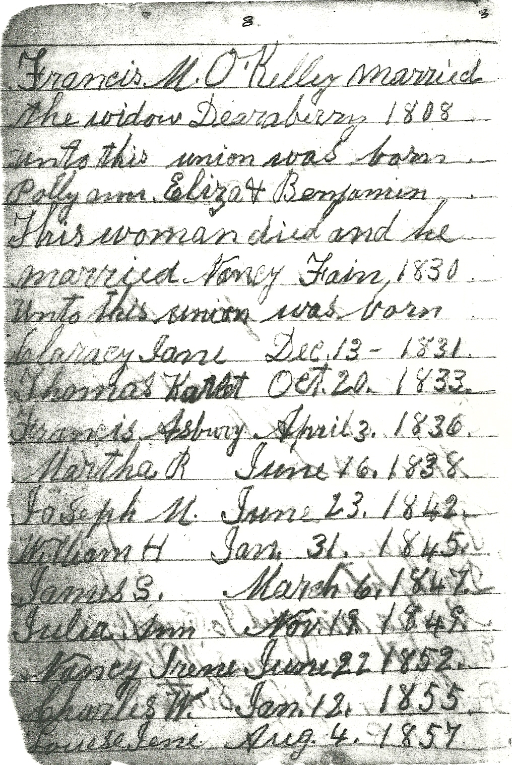 and James O'Kelley and Anna Dean were the parents of Francis and