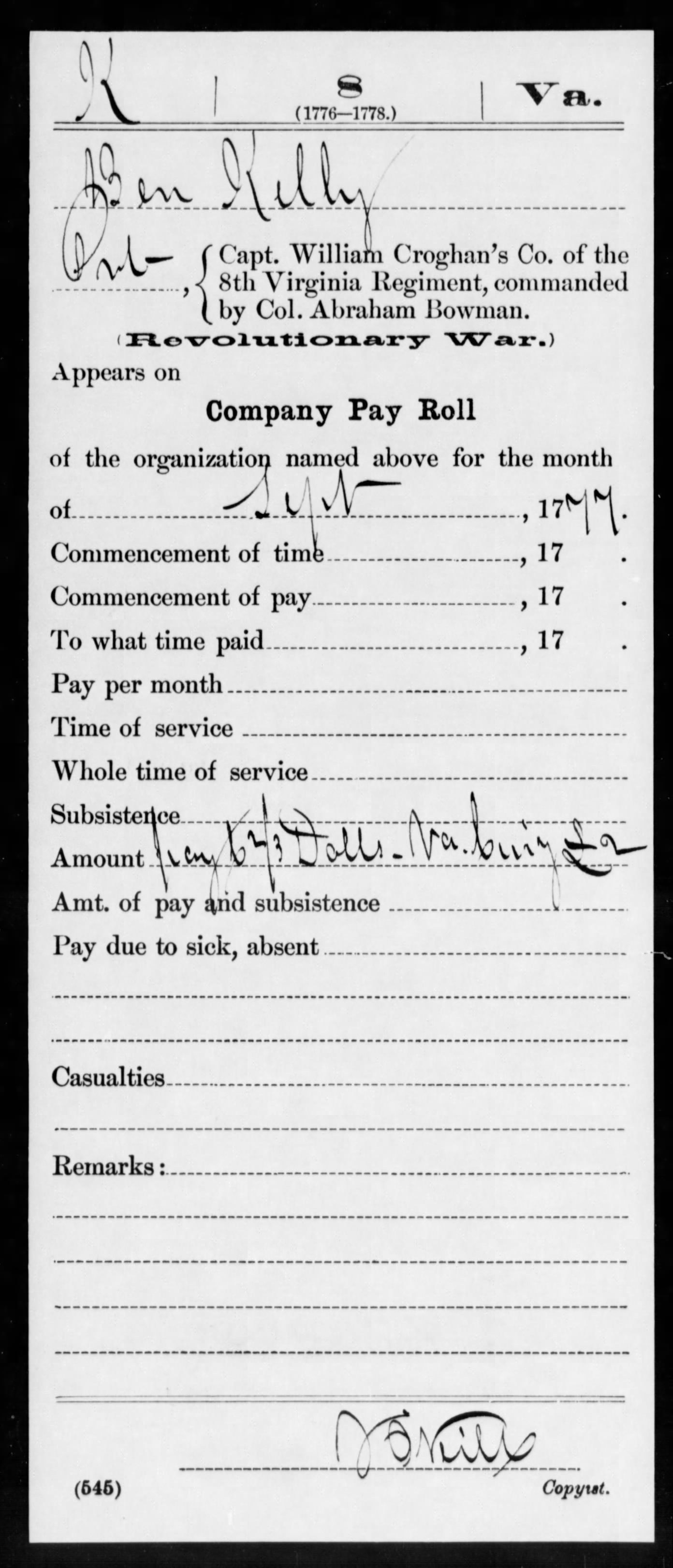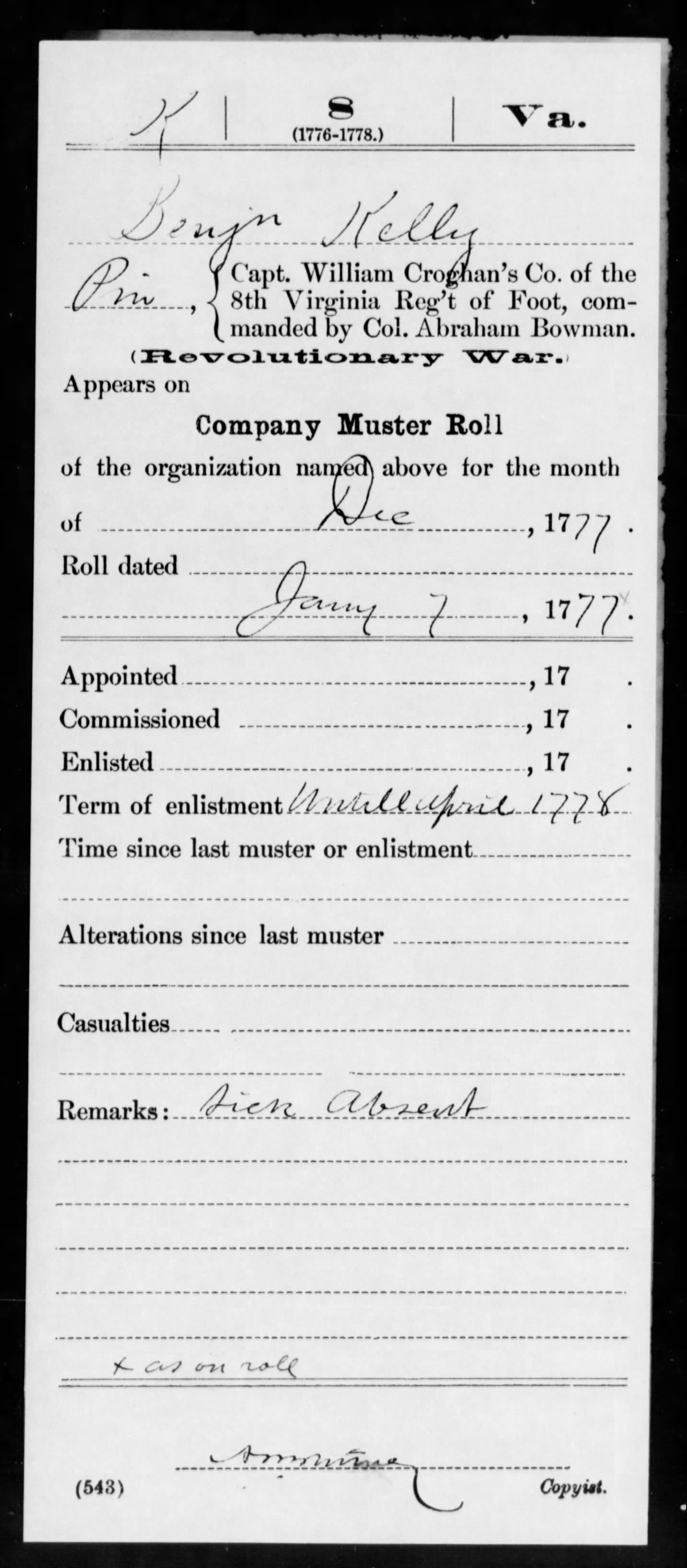 Index of /RevRecords/Service Records/Benjamin Kelly