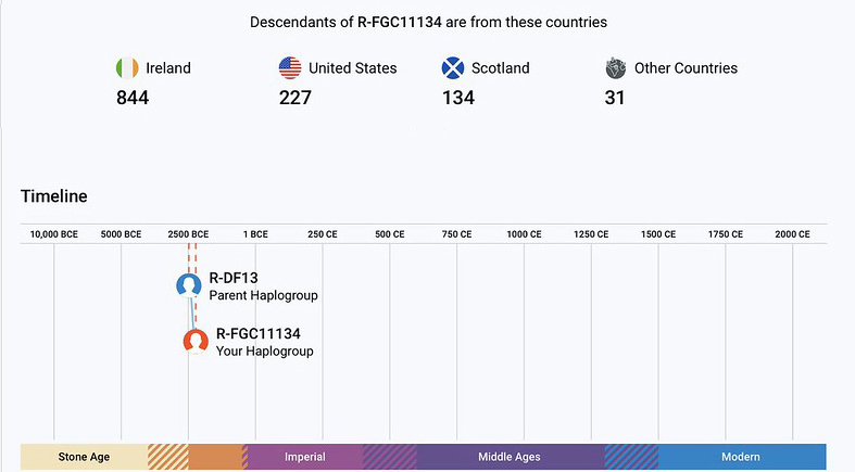 FGC11134 - Pollnagollum 911 & Treanmacmurtagh 116 2250 BCE     Z39589 Family Tree DNA Kelley R1b Group 13 Scotts 2450 BCE
