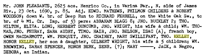 Arrival: 1666 - VirginiaName: Jno Kelly